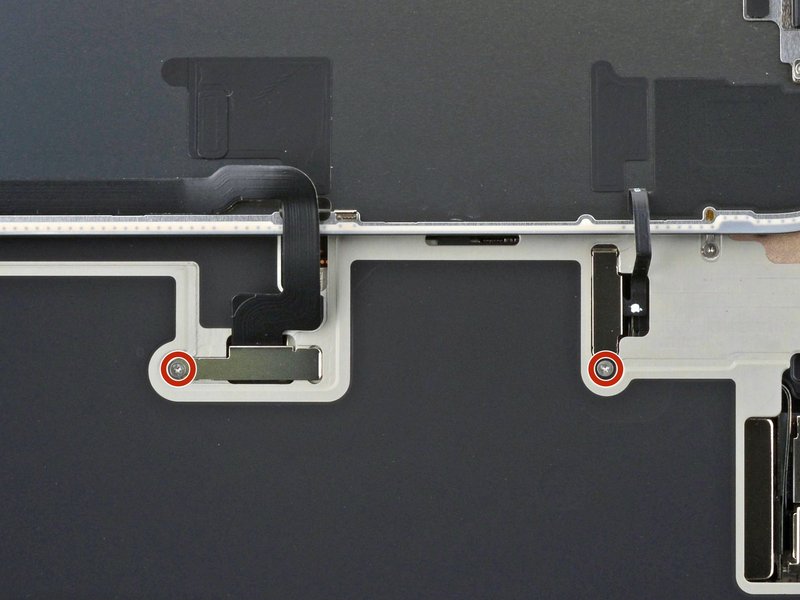 استخدم مفك P2 Pentalobe لإزالة المسمارين اللذين يبلغ طولهما 7.4 مم على جانبي منفذ الشحن.