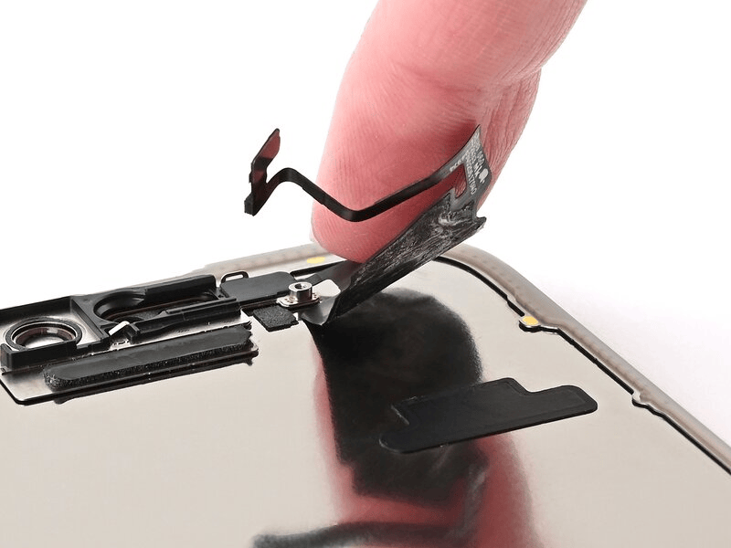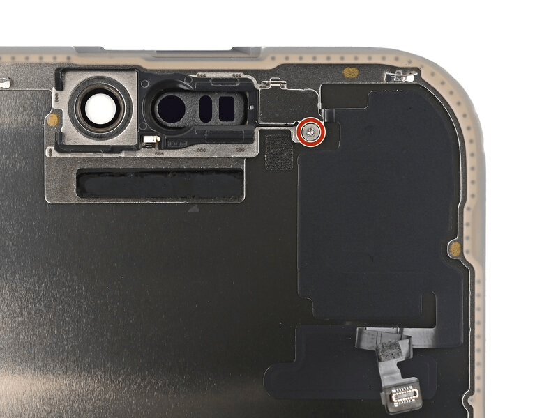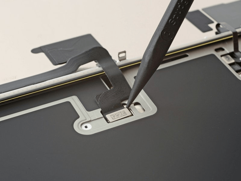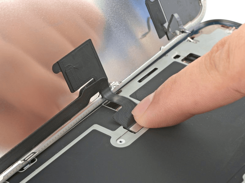 - قم بتمرير أداة الفتح ببطء أسفل كابل مستشعر الإضاءة المحيطة، بدءًا من أسفل الموصل في الأسفل والعمل لأعلى حتى يصبح الكابل حرًا من الشاشة.