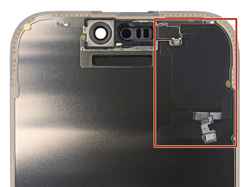 - يوجد مستشعر الإضاءة المحيطة خلف الشاشة، بجوار الفتحة المخصصة لمستشعرات التعرف على الوجه.